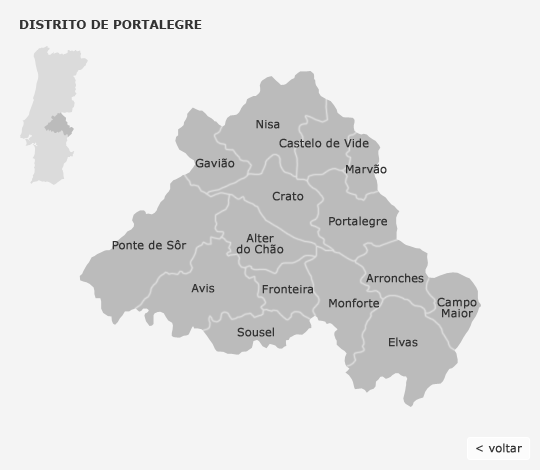 Gavião Castelo de Vide Crato Portalegre Marvão Ponte de Sôr Nisa Alter do Chão Avis Sousel Fronteira Monforte Arronches Campo Maior Elvas Voltar Voltar ao Mapa de Portugal